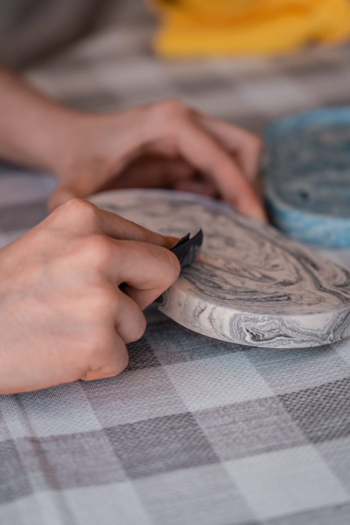 jesmonite é uma espécie de cimento, ou seja, é um líquido e um pó que misturamos