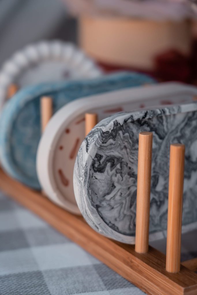 jesmonite também passou a ser utilizada para produzir copos de velas e ainda