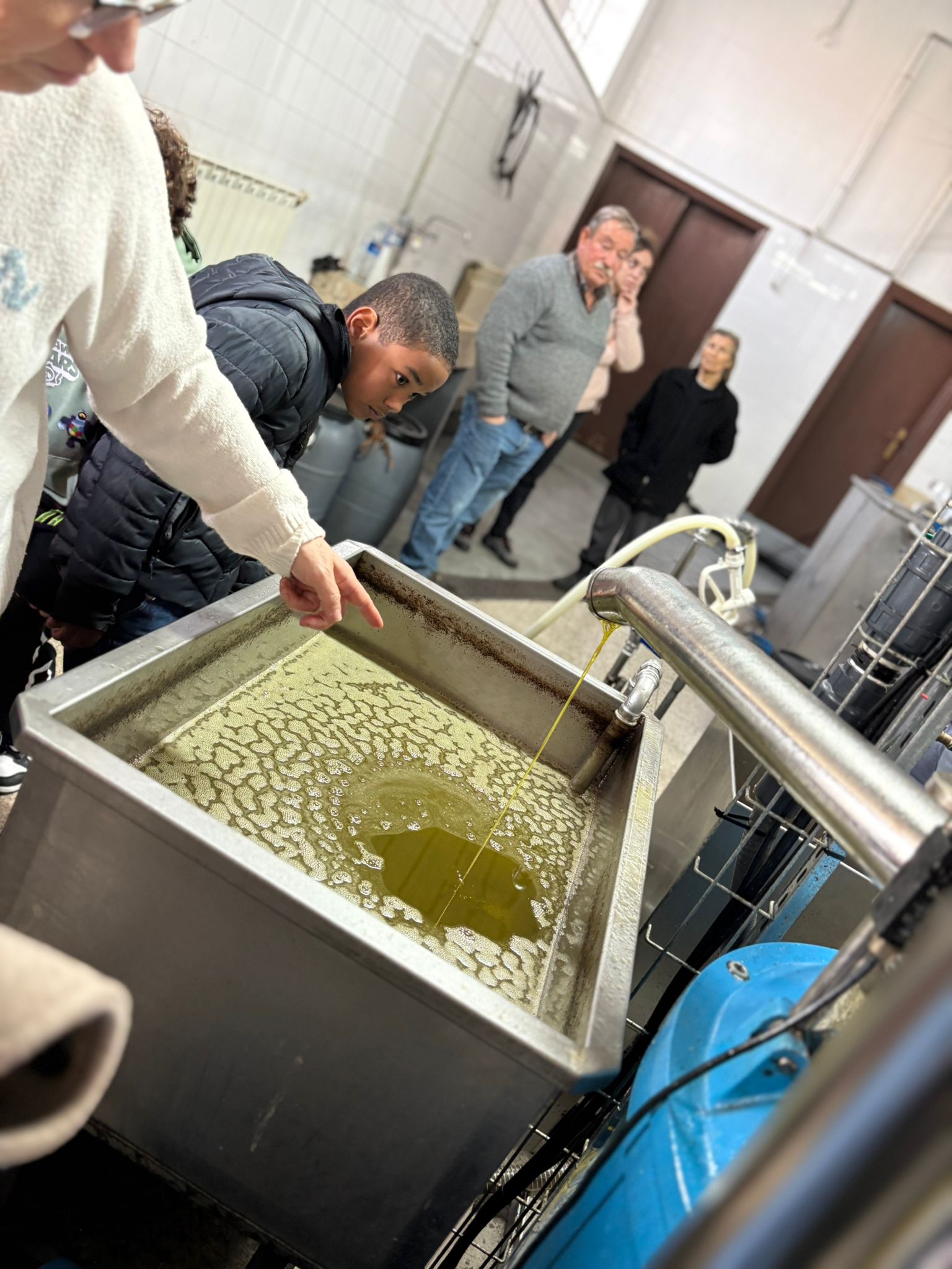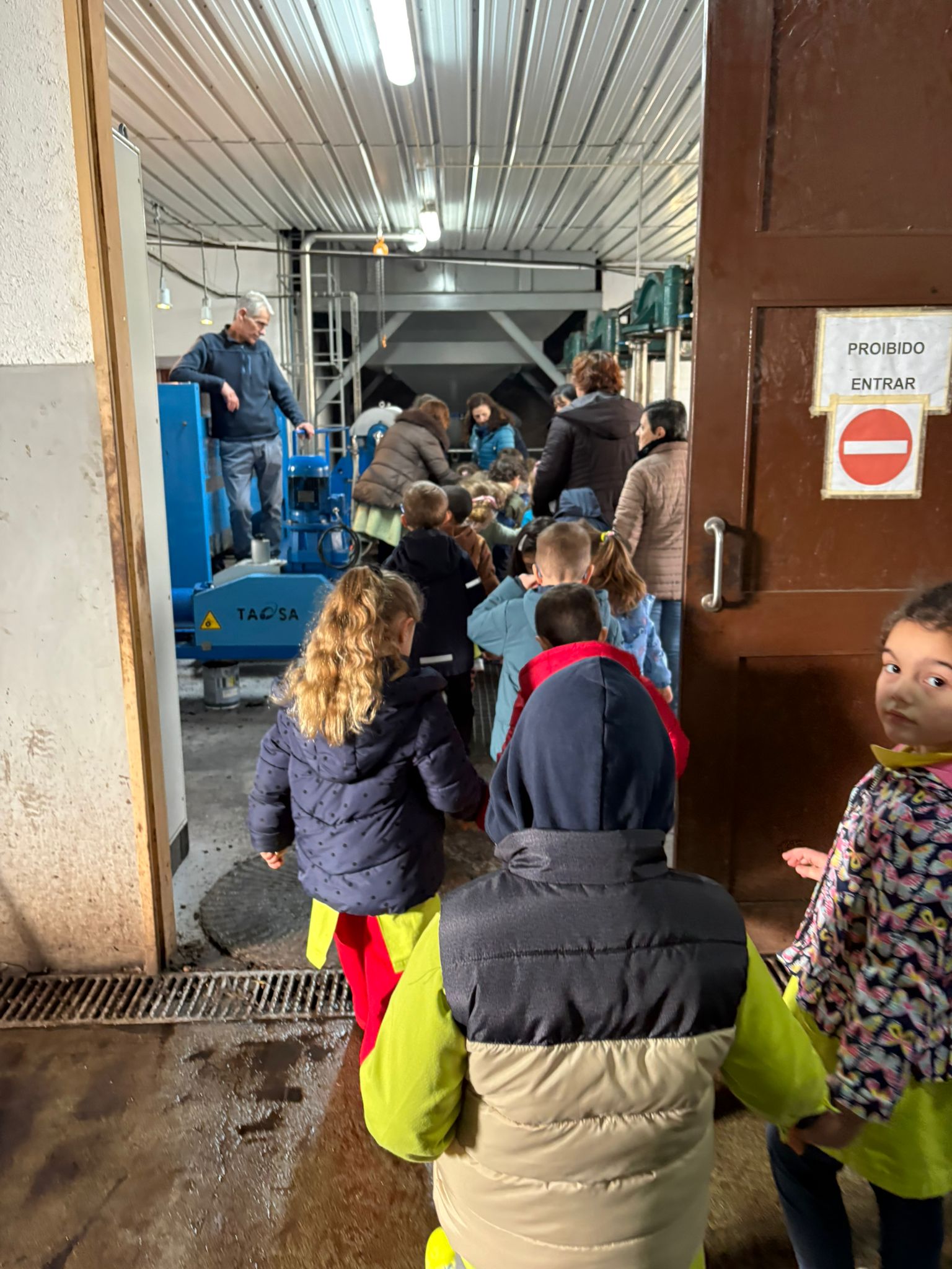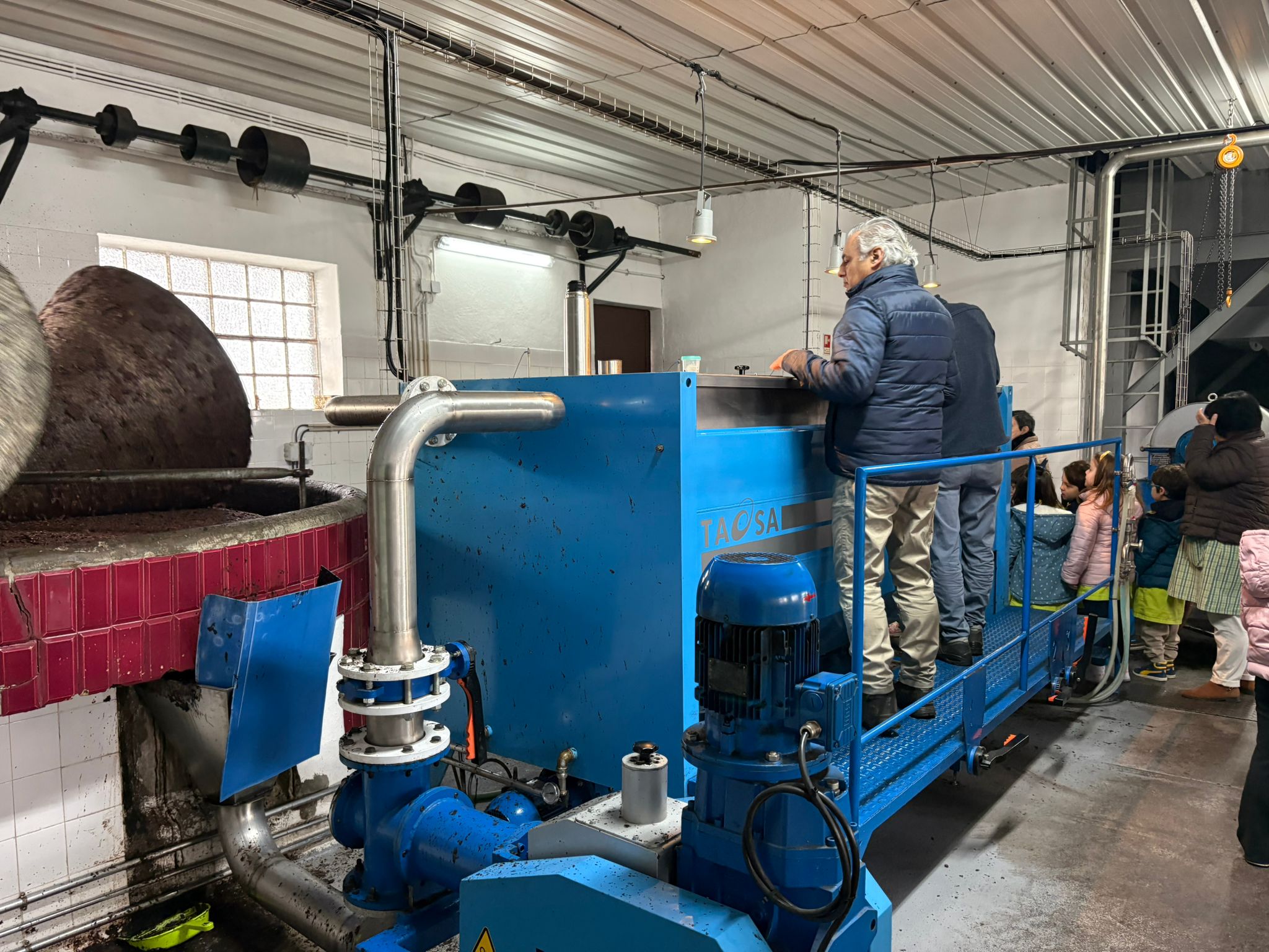 Ao longo da visita, os alunos tiveram a oportunidade de observar o funcionamento do lagar, conhecer as diferentes etapas do processo de transformação da azeitona em azeite e ouvir as explicações do responsável pelo espaço, Henrique Ferreira.