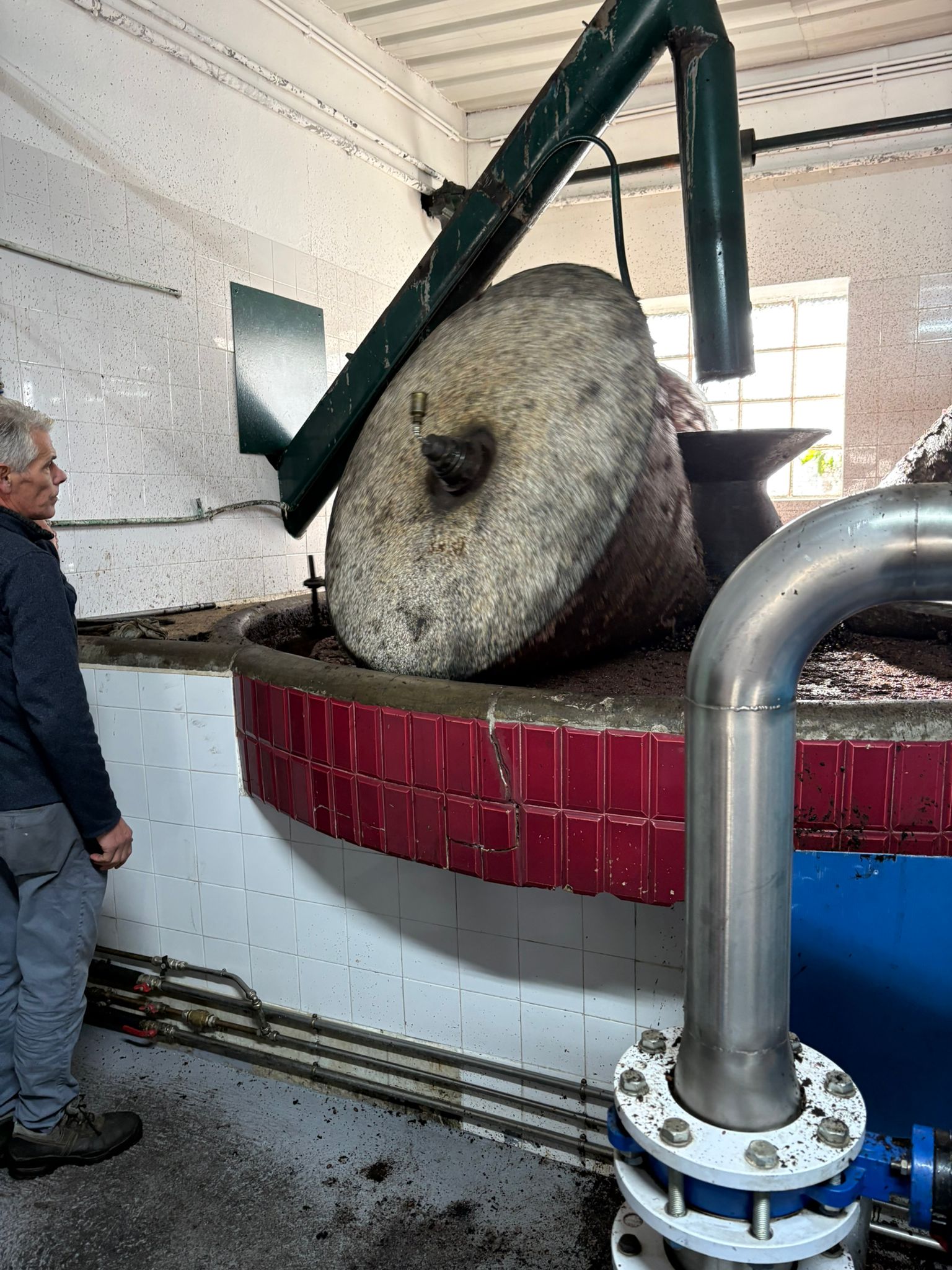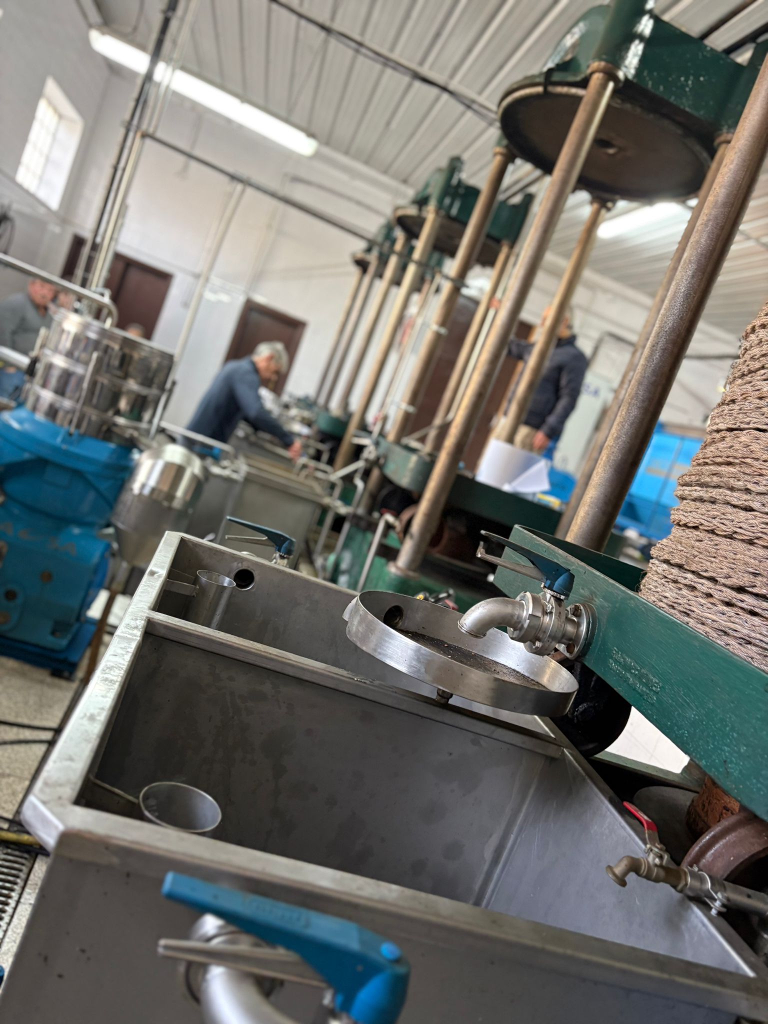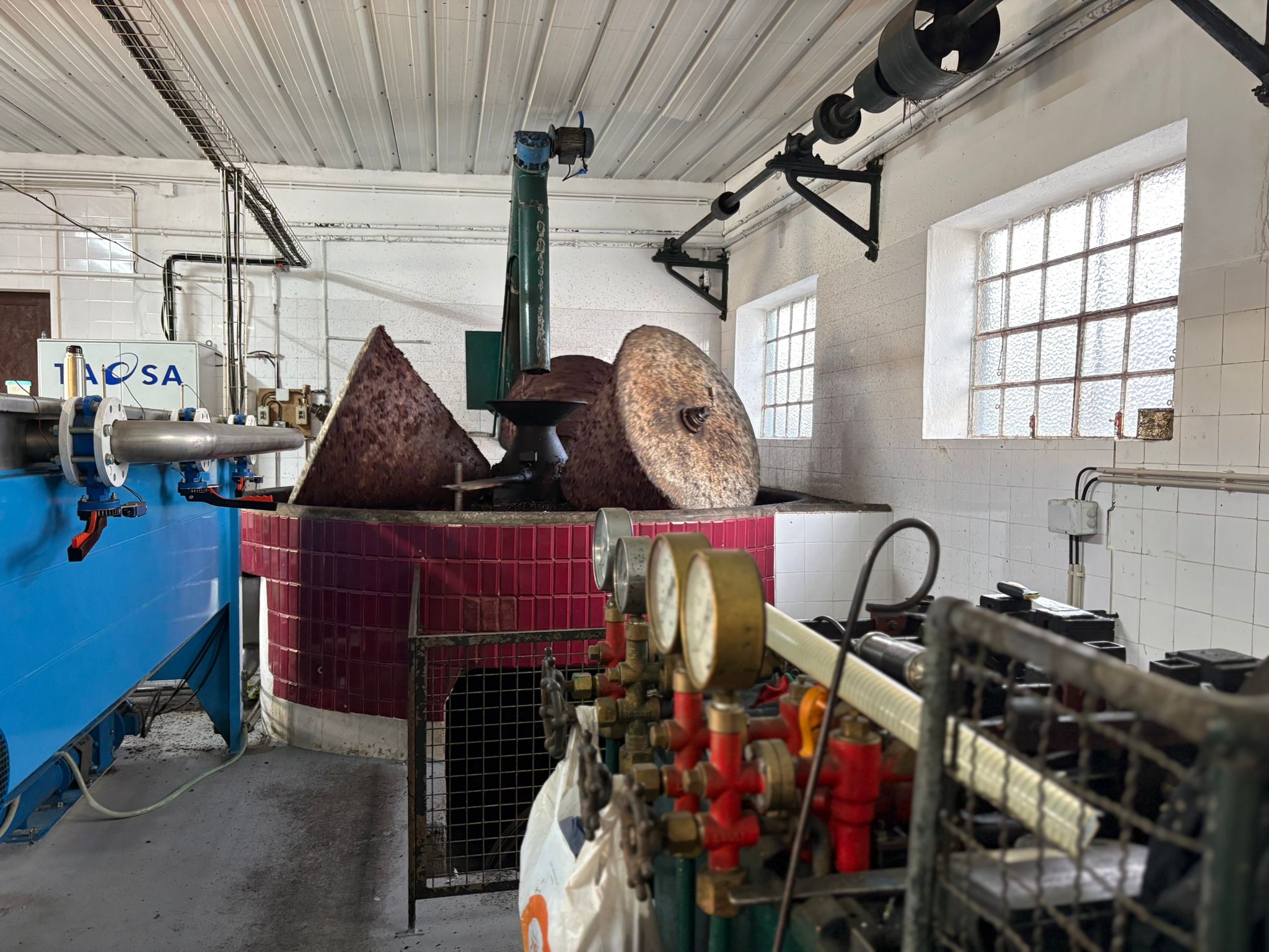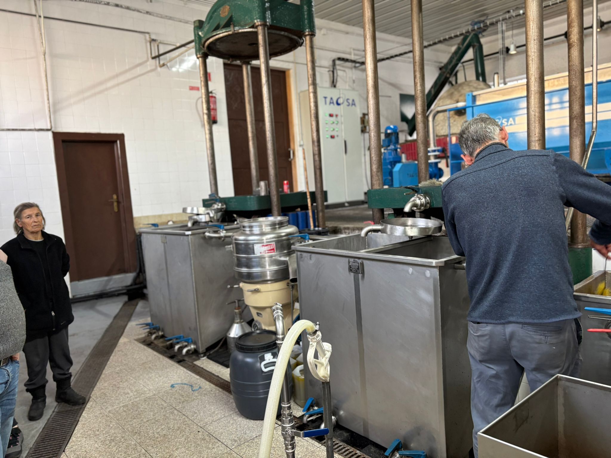 Ao longo da visita, os alunos tiveram a oportunidade de observar o funcionamento do lagar, conhecer as diferentes etapas do processo de transformação da azeitona em azeite e ouvir as explicações do responsável pelo espaço, Henrique Ferreira.