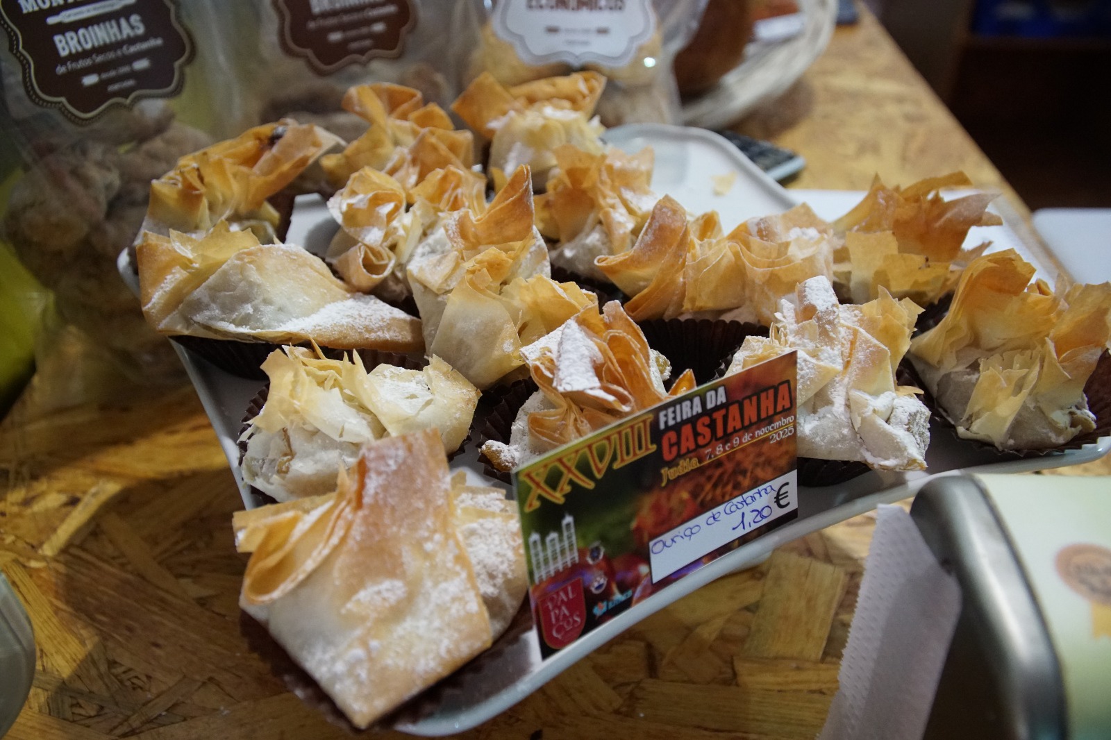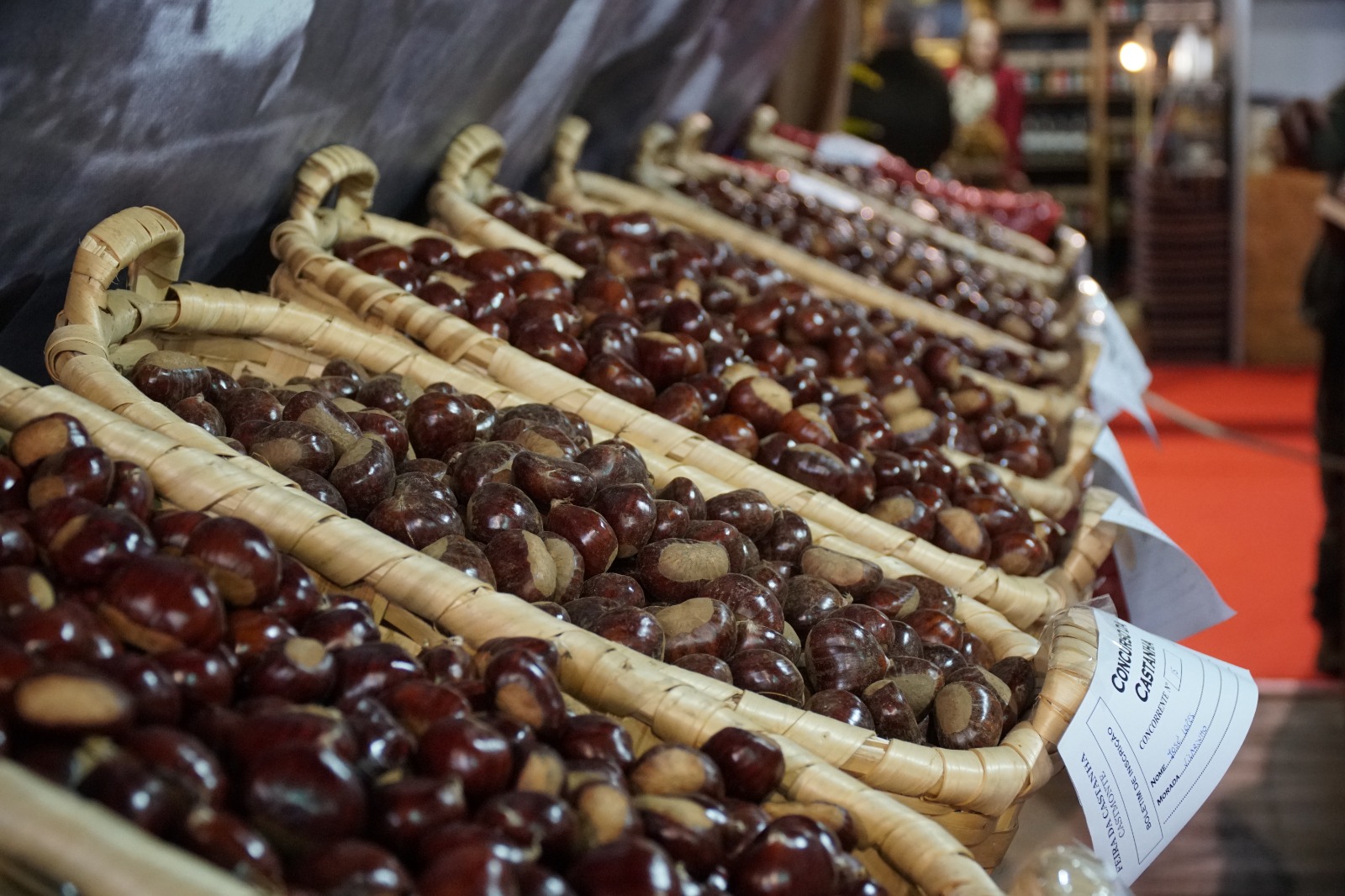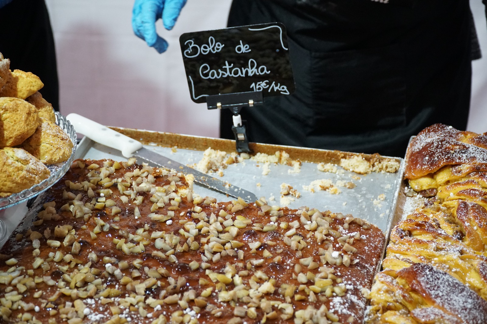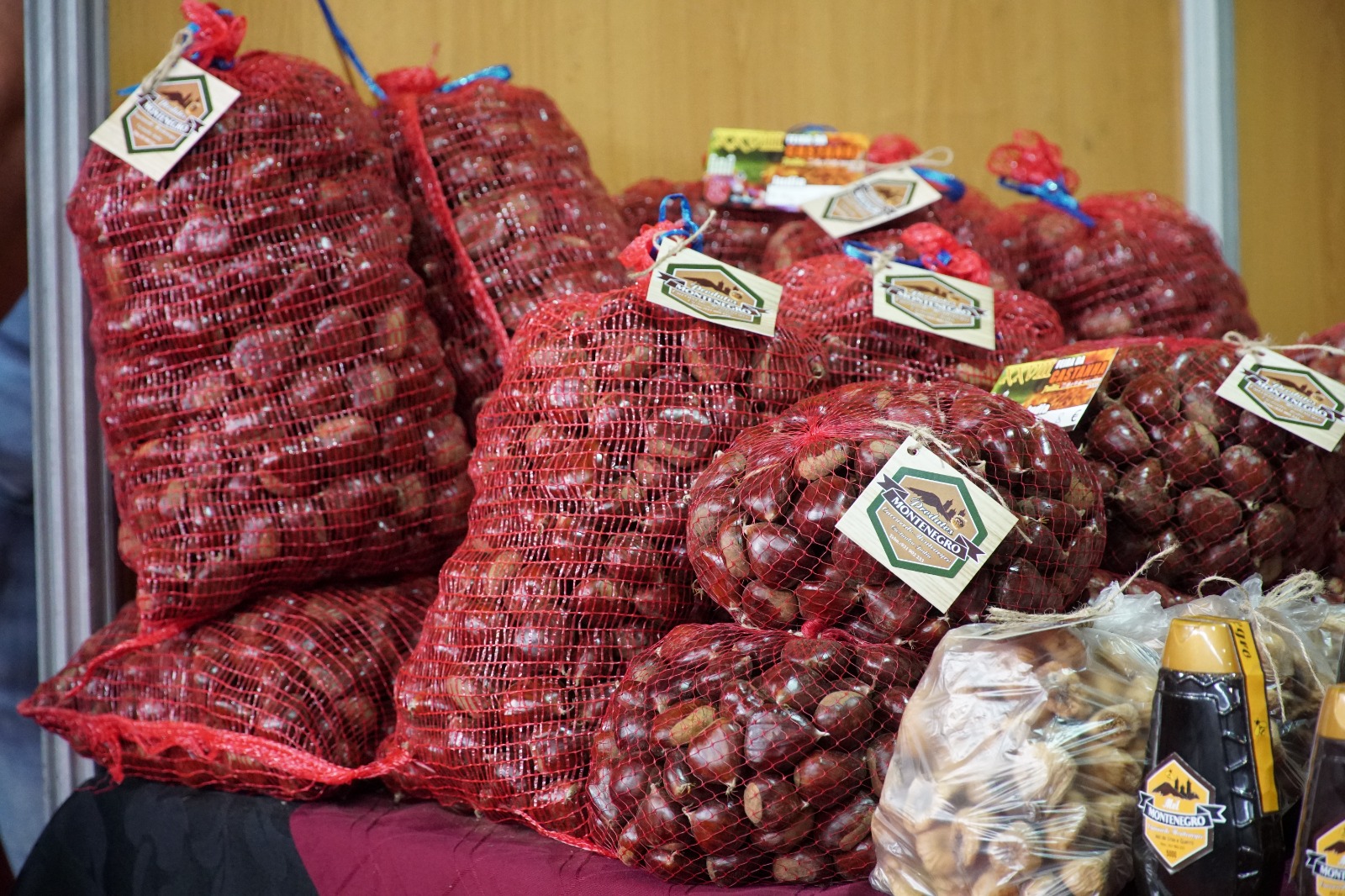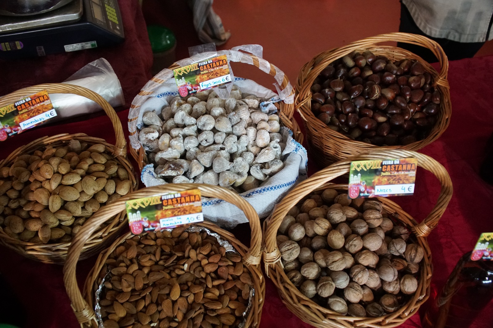 expositores de castanha, acompanhada pela doçaria e pelas iguarias feitas à
