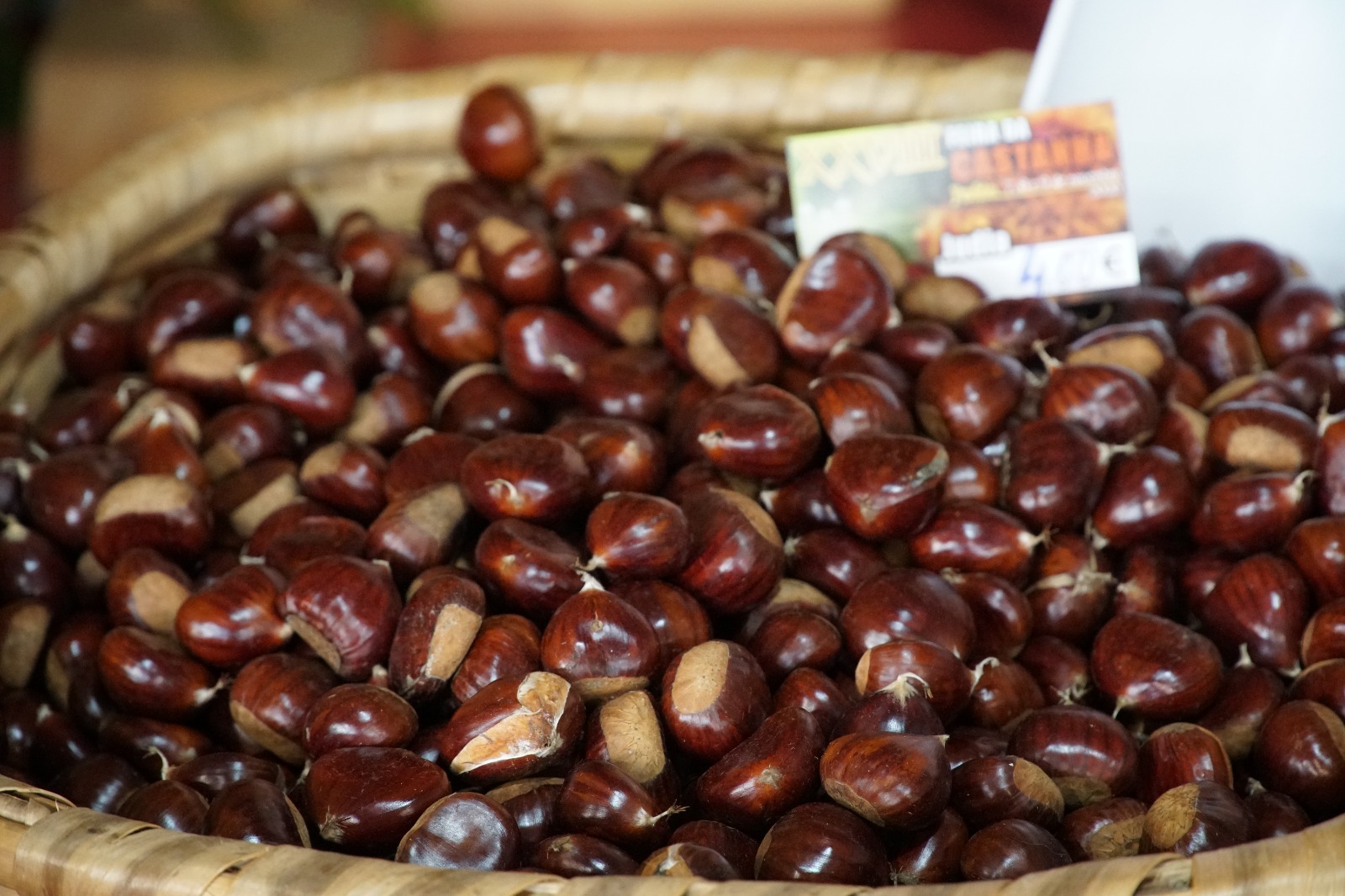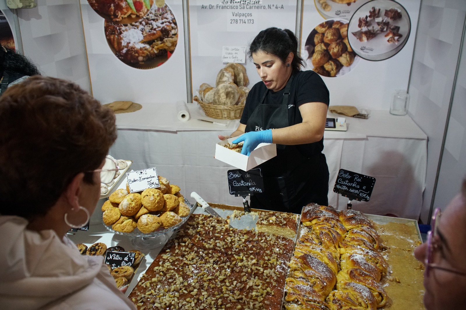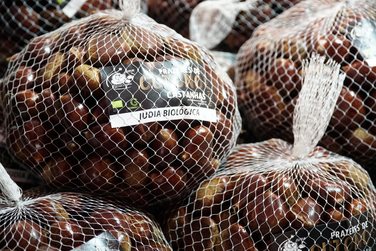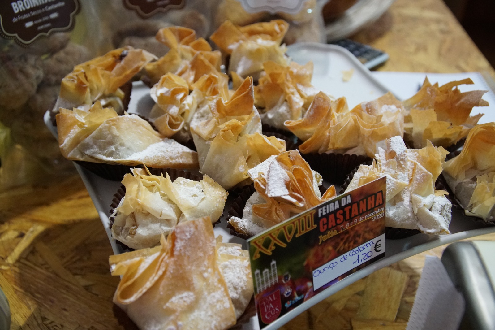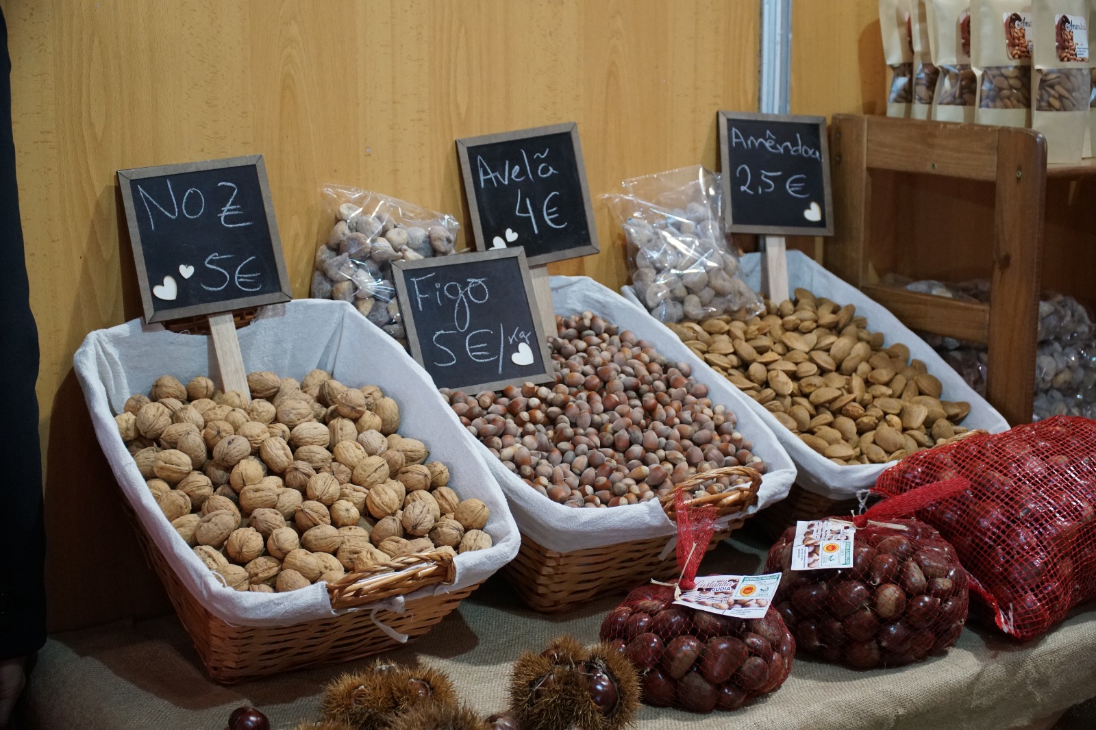 expositores de castanha, acompanhada pela doçaria e pelas iguarias feitas à