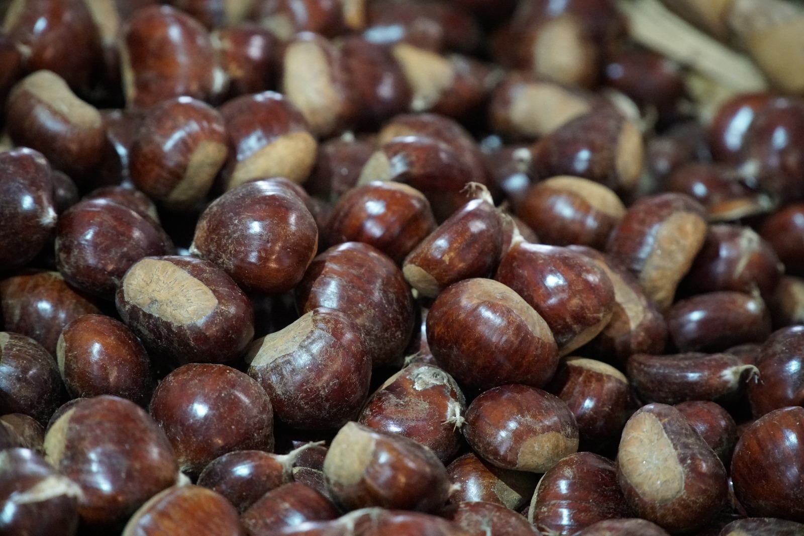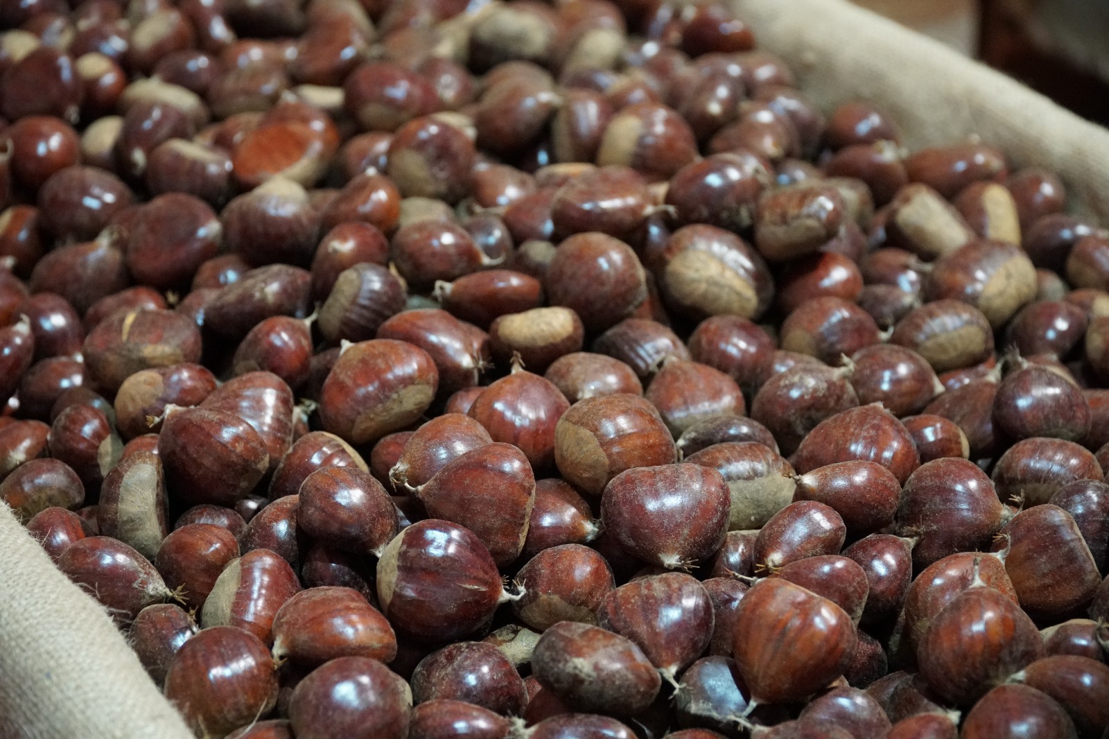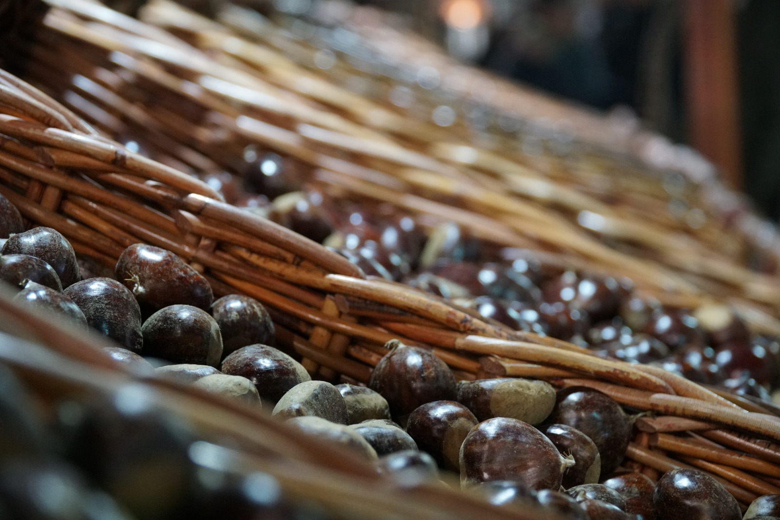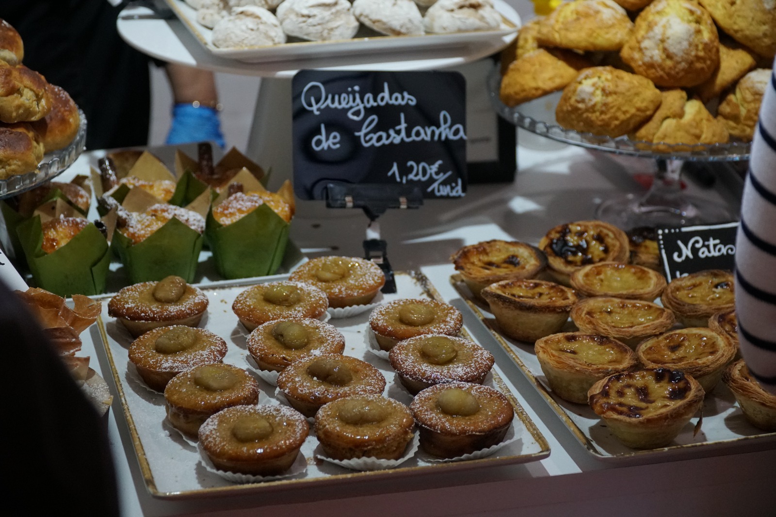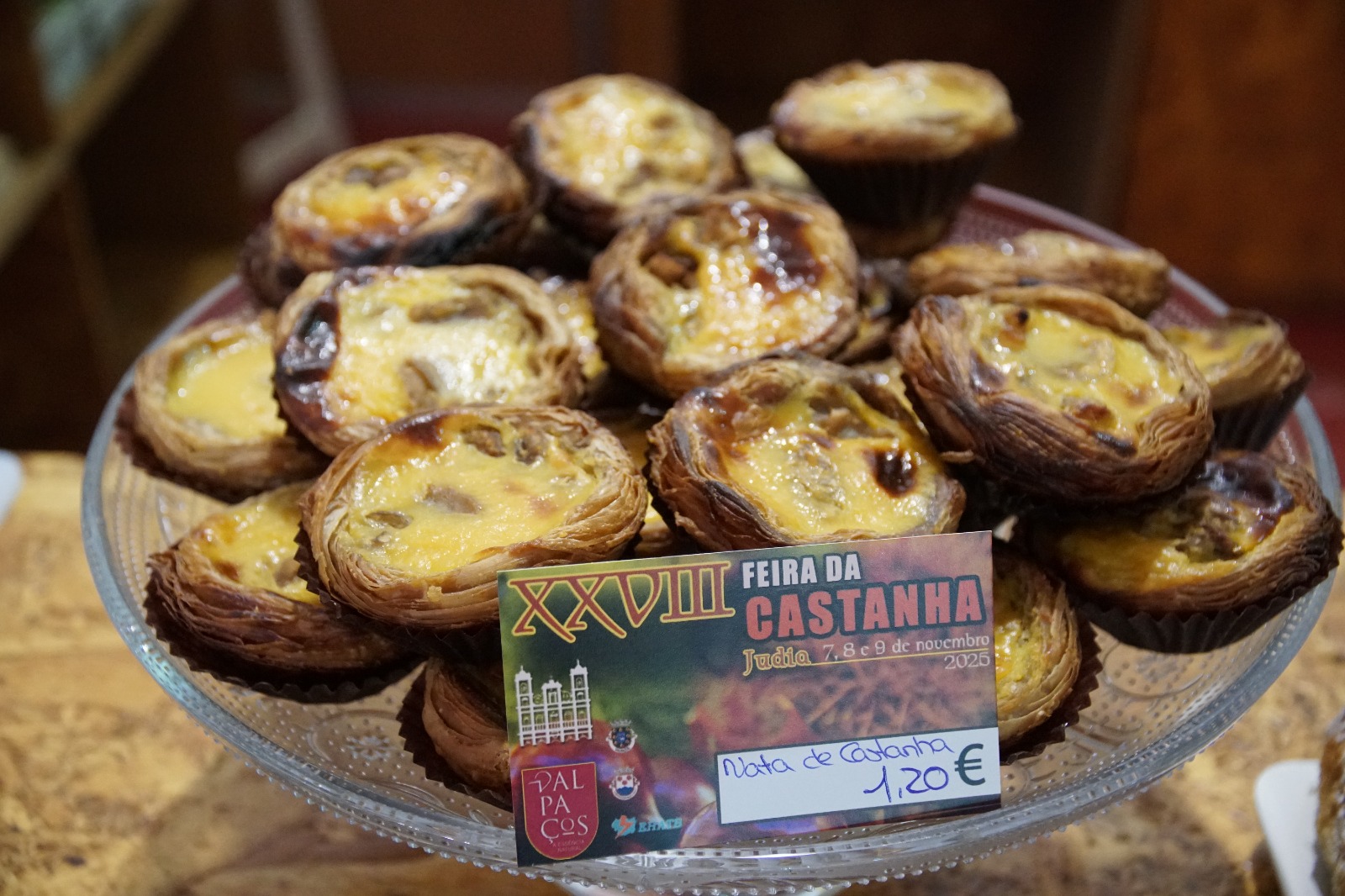 expositores de castanha, acompanhada pela doçaria e pelas iguarias feitas à
