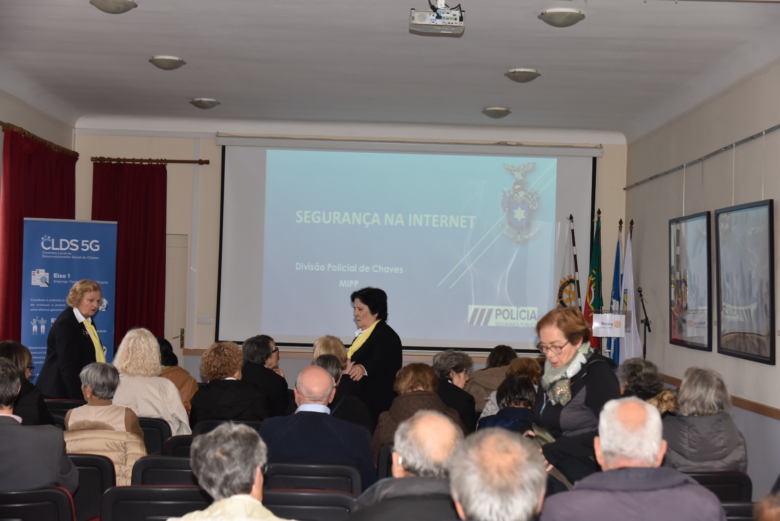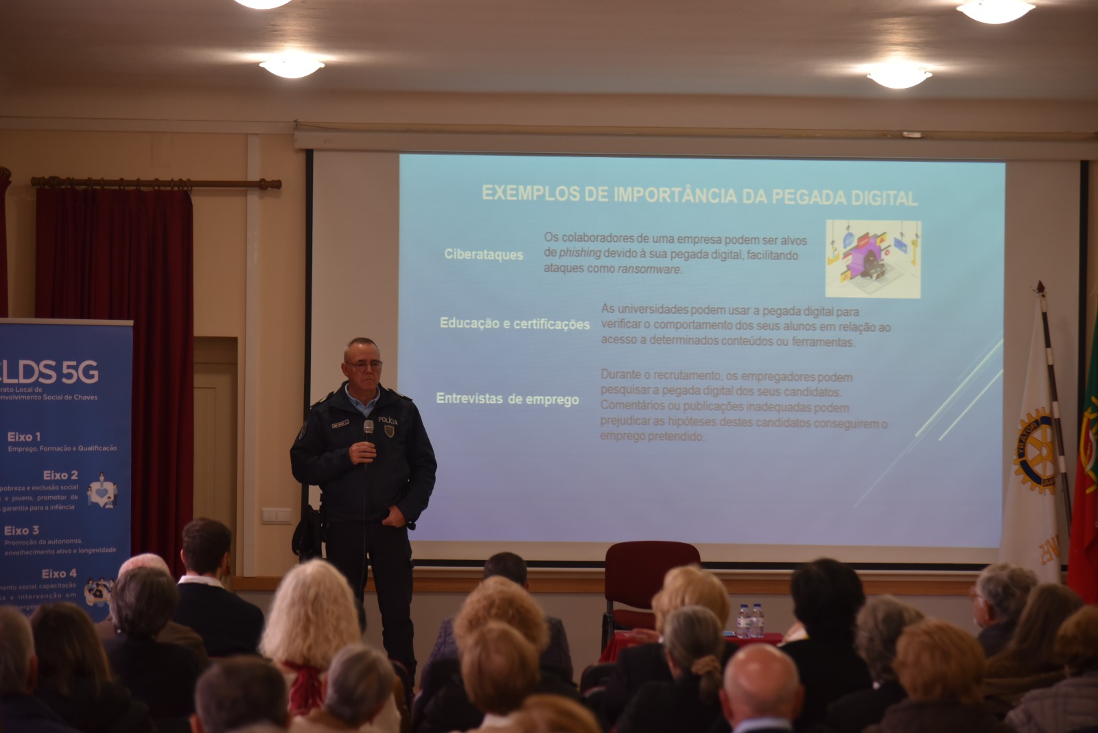 A Universidade Sénior do Rotary Club de Chaves acolheu, na quarta-feira, dia 12 de novembro, uma ação de sensibilização sobre “Burlas Online”, promovida pelo Município de Chaves, em colaboração com a Equipa Modelo Integrado de Policiamento de Proximidade da Polícia de Segurança Pública (PSP) de Chaves.