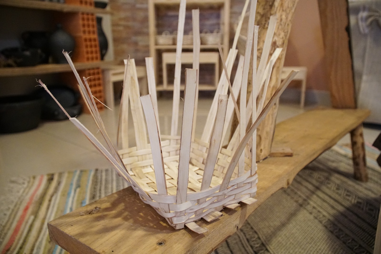 No mesmo espaço, a cestaria também tem destaque. Manuel Gonzaga, que se dedica à atividade em part-time, sublinha que se trata sobretudo de uma paixão.