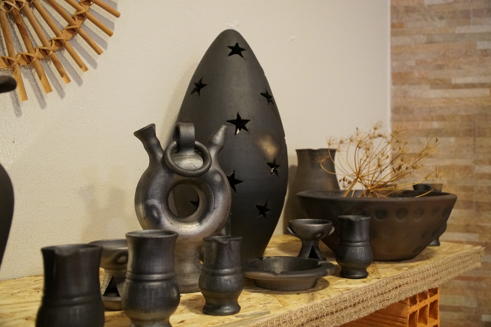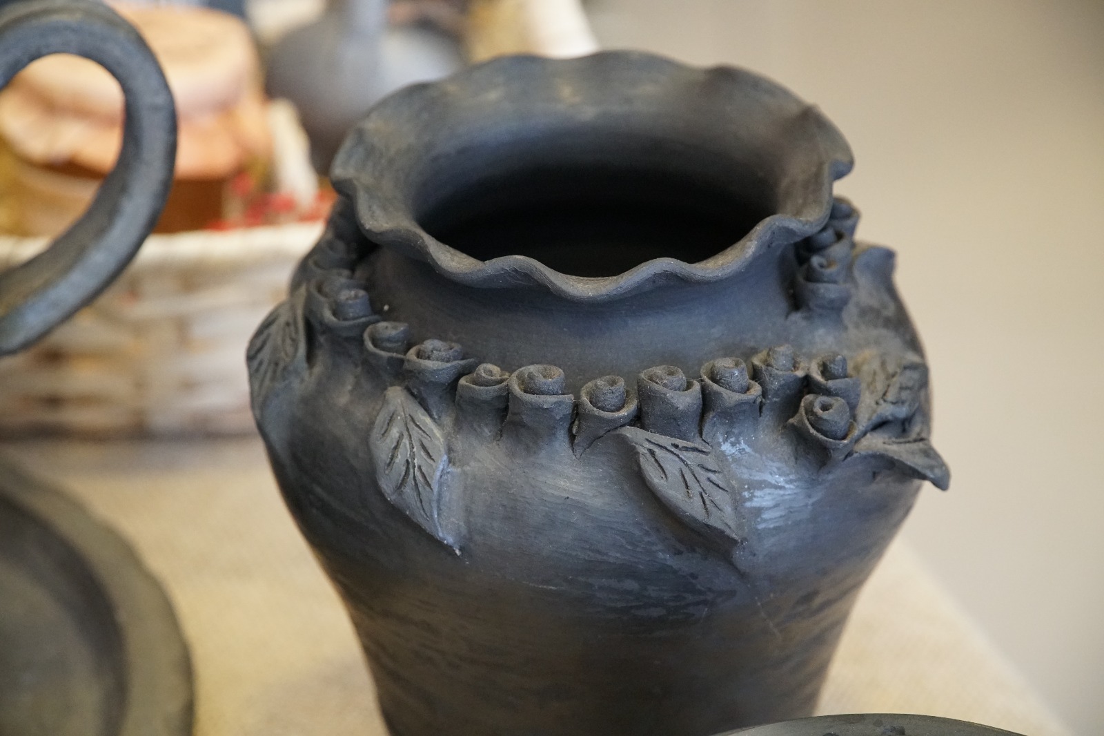 Helena aprendeu com o pai esta arte e explica como o barro ganha a cor preta. “A louça é encaixada num poço, que tem uma grelha ao meio. O que lhe dá a cor preta é mesmo a falta de oxigénio. A peça é toda abafada e como não há entrada nem saída de oxigénio, fica preta”.