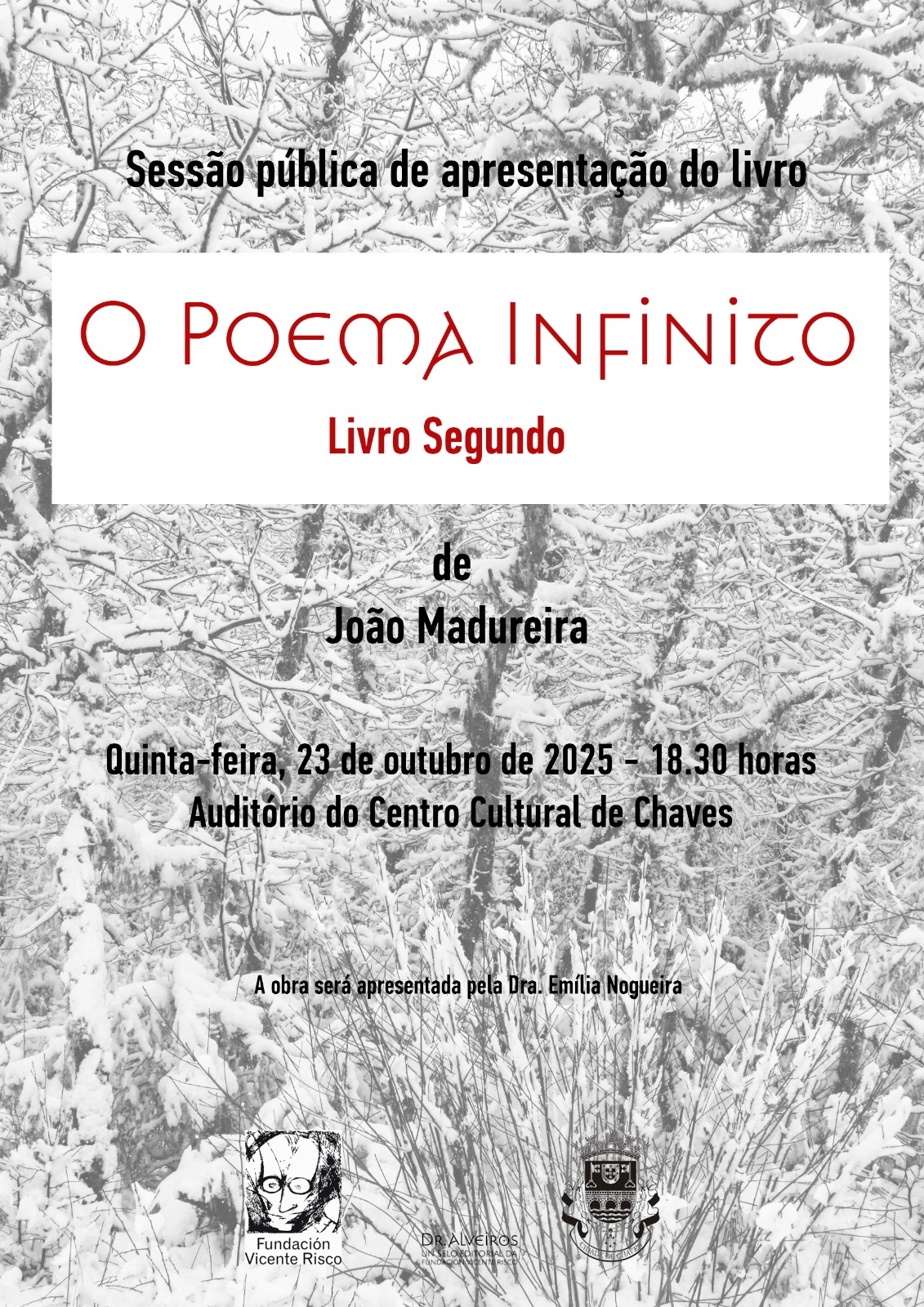 O Auditório Municipal de Chaves abre portas à literatura na quinta-feira, dia 23 de outubro, às 18h30, com a apresentação do mais recente livro de João Madureira, intitulado “O Poema Infinito – Livro Segundo”. A apresentação estará a cargo de Emília Nogueira, diretora da Universidade Sénior de Chaves, que fará uma leitura pessoal e inspirada da obra e do percurso do escritor.